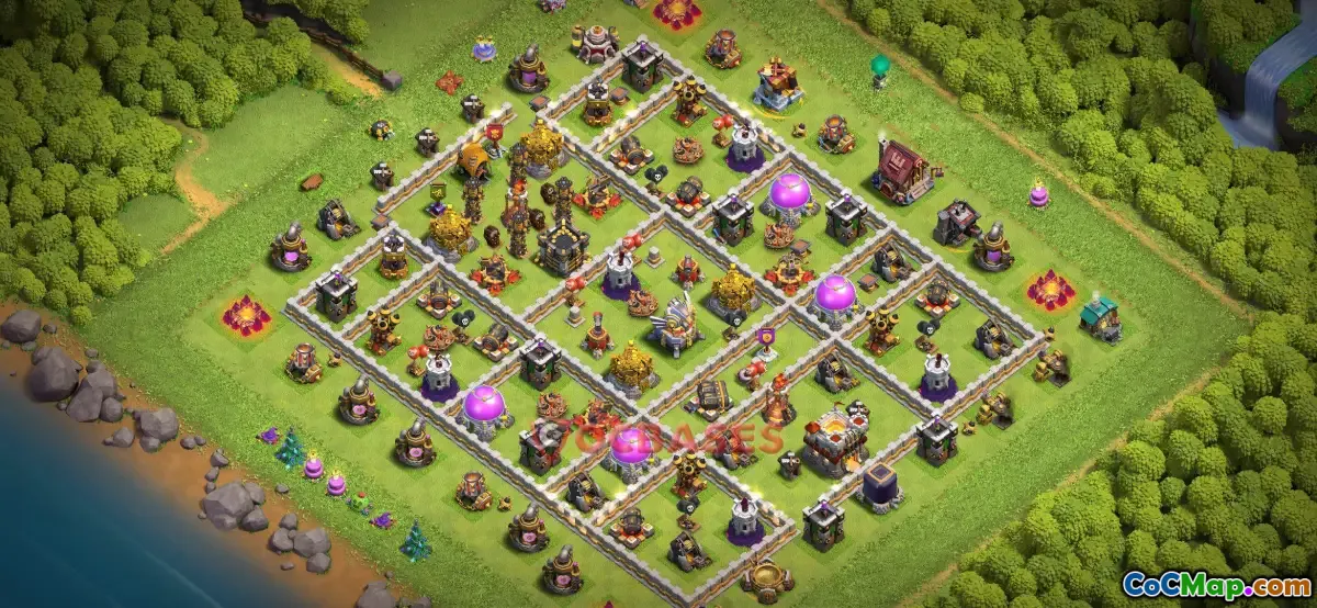 One of the essential elements of a good Town Hall 11 farming base is the placement of traps and defensive structures. Traps like bombs, spring traps, and air mines are placed in high-traffic areas where attackers are likely to deploy troops. Defensive buildings such as Archer Towers, Cannons, Wizard Towers, and X-Bows are strategically spaced to cover the base thoroughly, creating multiple layers of defense. Some players also protect their resource storages with Clan castles and heroes, further complicating attacks.