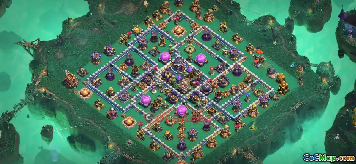 The Town Hall 15 farming base in Clash of Clans is designed primarily to protect a player's resources while encouraging opponents to attack from less vulnerable areas. These bases often feature a layout where key resource storages are well-guarded within compartments and surrounded by defenses, making it difficult for attackers to snag treasures easily. Effective designs also include traps and defensive structures strategically placed to catch attacking troops off guard, maximizing the base's ability to minimize resource loss during raids.