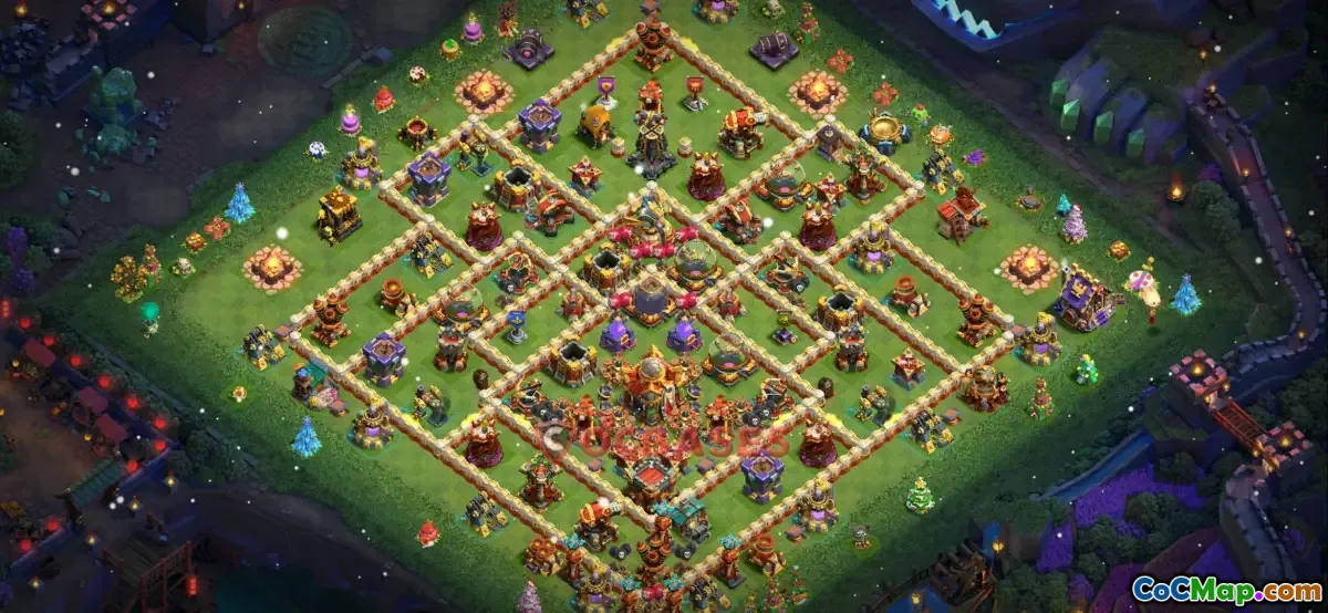 Farming bases at Town Hall 16 are crucial for players who want to steadily upgrade their Town Hall and other upgradeable units. A well-structured farming base can minimize resource losses during raids, allowing players to accumulate resources faster and more safely. Typical features include well-positioned defenses, such as Archer Towers, Cannons, and Inferno Towers, that work together to defend against different attack strategies. Additionally, the placement of traps and Clan Castle helps to catch attacking troops off guard, further protecting resources.