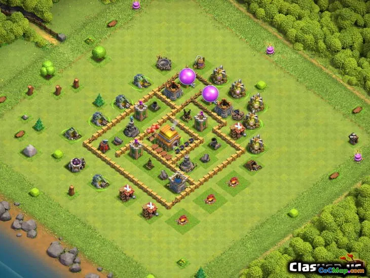 Základní rozložení na radnici 6 se obvykle zaměřuje na ochranu klíčových zdrojů, jako jsou skladování Elixir a zlaté doly, a zároveň zvažují umístění obranných budov. Společná strategie zahrnuje centralizaci radnice a umístění obranných struktur, jako jsou děla a věže Archer kolem ní, aby se vytvořila solidní obrana. Hráči mohou také hledat specifické trofejní základny, které jsou navrženy tak, aby efektivně držely trofeje, a zabránit ztrátě během bitvy pro více hráčů. Tato trofejní rozložení základny upřednostňují obranu před akumulací zdrojů, což pro útočníky ztěžuje nárokování vítězství.