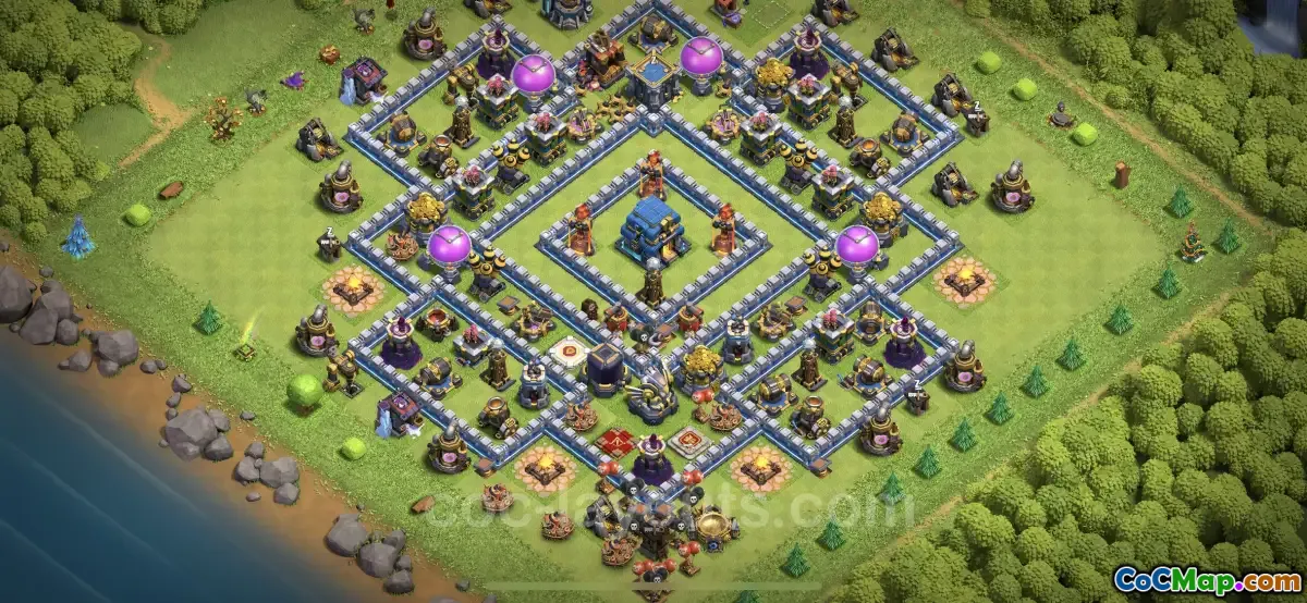 The Best Anti 2 Stars Base for Town Hall Level 12 in Clash of Clans is designed to provide a robust defense against enemy attacks while ensuring a balance between resource protection and trophy preservation. This hybrid base layout is strategically crafted to obstruct opponents from easily achieving two stars, which is a key aspect of competitive play. By employing a combination of defensive structures and thoughtful placement, this base aims to outsmart adversaries and maintain the player's stronghold effectively.