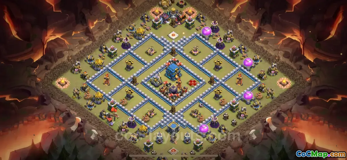Additionally, the strategic deployment of defensive structures and traps throughout the base is crucial to its success. For example, ensuring that splash damage defenses are adequately placed to cover large areas can significantly reduce the effectiveness of swarm troops. Similarly, hiding key defenses and creating funneling opportunities can mislead and hinder attackers, making it tougher for them to earn a three-star rating.