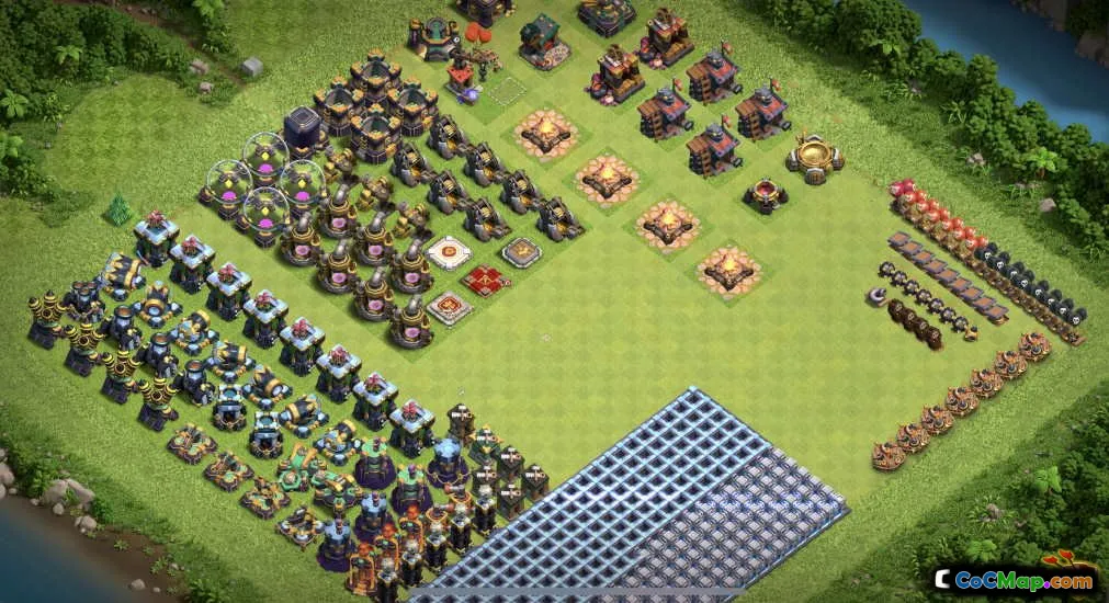 Die Basislayout für Rathaus 14 in Clash of Clans konzentriert sich darauf, Ihr Heimatdorf zu strukturieren, um die Verteidigung zu verbessern und das Spiel durchzuführen. Spieler versuchen oft, ihre Layouts zu optimieren, um Ressourcen effektiv zu schützen, den Schaden von Angreifern zu minimieren und eine starke strategische Position zu schaffen. Dieses Level führt neue Gebäude und Upgrades ein und ermöglicht es den Spielern, ihre Grundlagen mit fortschrittlichen Taktiken zu verfeinern, die sich an das sich entwickelnde Gameplay anpassen. Daher sind sorgfältige Planung und Design für den Erfolg und die Nachhaltigkeit bei Clash of Clans von wesentlicher Bedeutung.