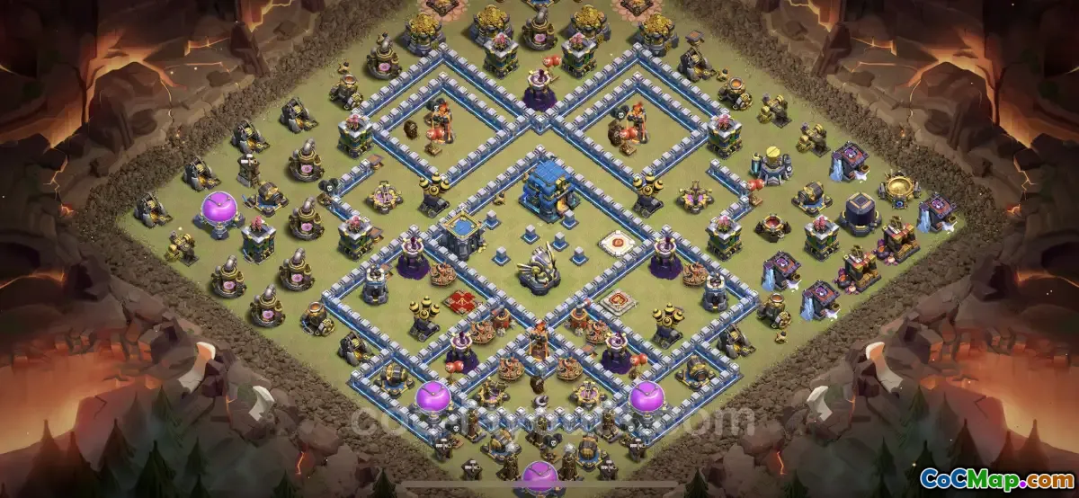 The top max levels war bases for TH12 come equipped with features that make them formidable against both ground and air attacks. These bases are meticulously designed to protect vital structures by ensuring that defenses are placed strategically. For instance, housing construction structures such as defenses, traps, and walls are often arranged to create a labyrinth for attacking troops, making it difficult for opponents to reach the core of the base where the Town Hall is located.