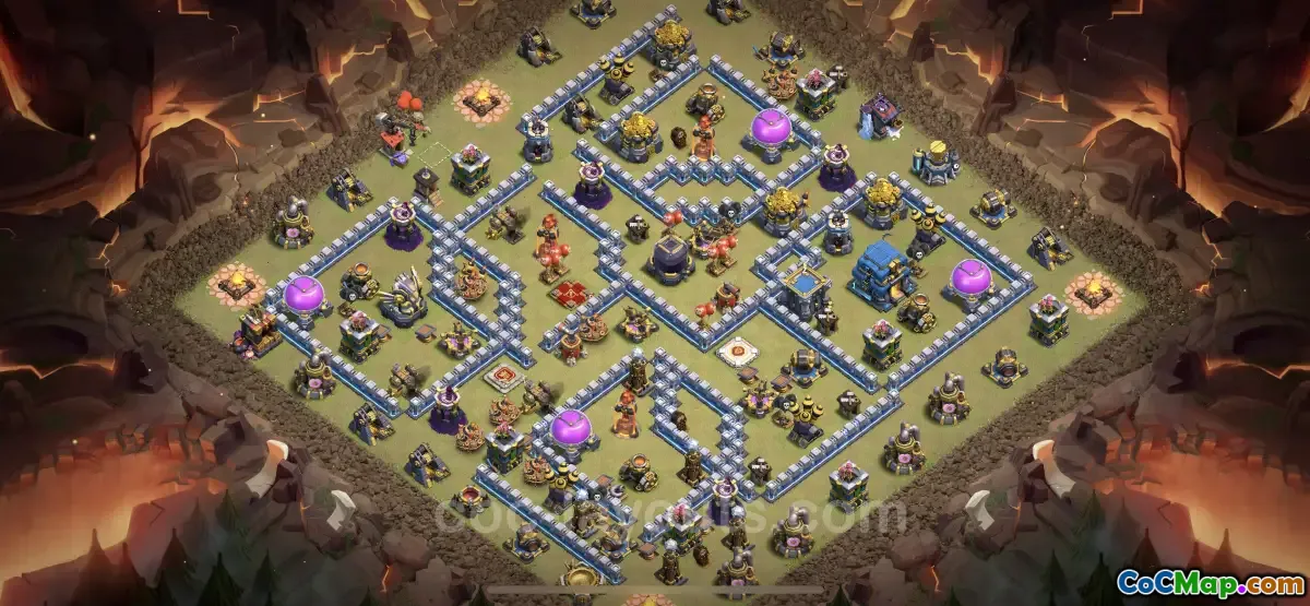 When analyzing a successful CWL base at this level, it's essential to consider the placement of key defensive structures. Defensive buildings should be strategically spread out to prevent mass damage from spells like Lightning and Tornado. Base designs commonly feature compartments to break up the paths of Electro Dragons, making it difficult for them to target multiple structures at once. Achieving the right balance between offense and defense is key to a well-performing war base.