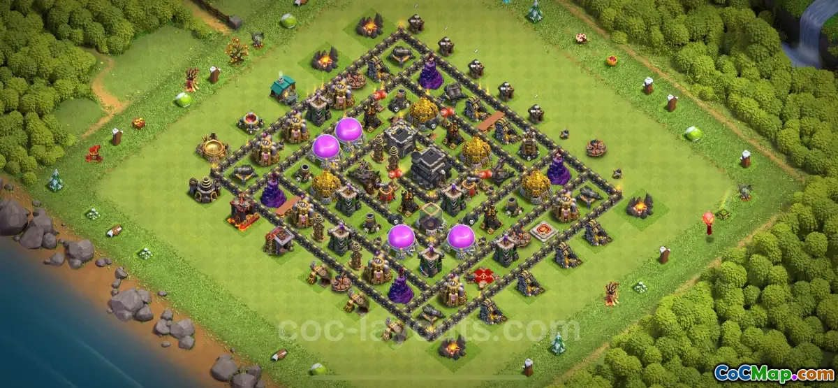 Das Basisdesign umfasst mehrere strategische Elemente, die gängige Angriffsmuster vereiteln. Der Schwerpunkt liegt auf der Platzierung von Verteidigungsanlagen, Fallen und Mauern in einer Weise, die den Schutz wichtiger Ressourcen und des Rathauses selbst optimiert. Durch die sorgfältige Positionierung dieser Elemente können Spieler Engpässe schaffen und Angreifer in Fallen locken, wodurch die Effektivität feindlicher Überfälle erheblich verringert wird.