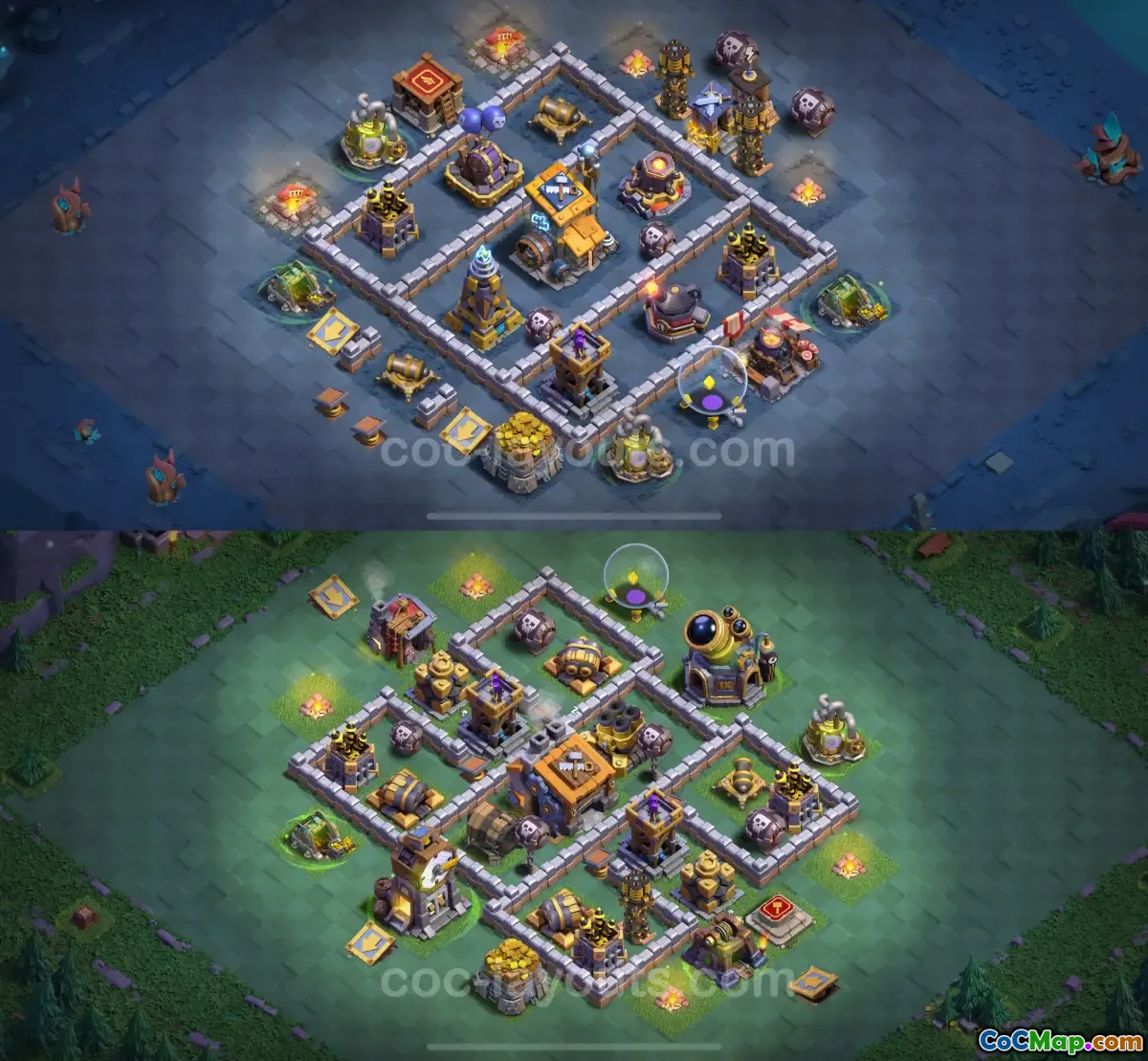 Das „Best Builder Anti Everything Base Level 9 Copy Design“ für Clash of Clans ist ein strategisches Layout, das darauf abzielt, die Ressourcen und Trophäen der Spieler effektiv zu schützen. Diese Basiskonfiguration wurde für Builder Base Level 9 entwickelt und konzentriert sich auf die Bereitstellung einer soliden Verteidigung gegen verschiedene Angriffsstrategien, die Gegner möglicherweise anwenden. Je weiter die Spieler im Spiel voranschreiten, desto wichtiger wird eine gut strukturierte Basis, um Verluste bei feindlichen Überfällen zu minimieren. Dieses Design wurde speziell darauf zugeschnitten, die Sicherheit der Ressourcen zu gewährleisten und gleichzeitig starke Verteidigungsfähigkeiten aufrechtzuerhalten.