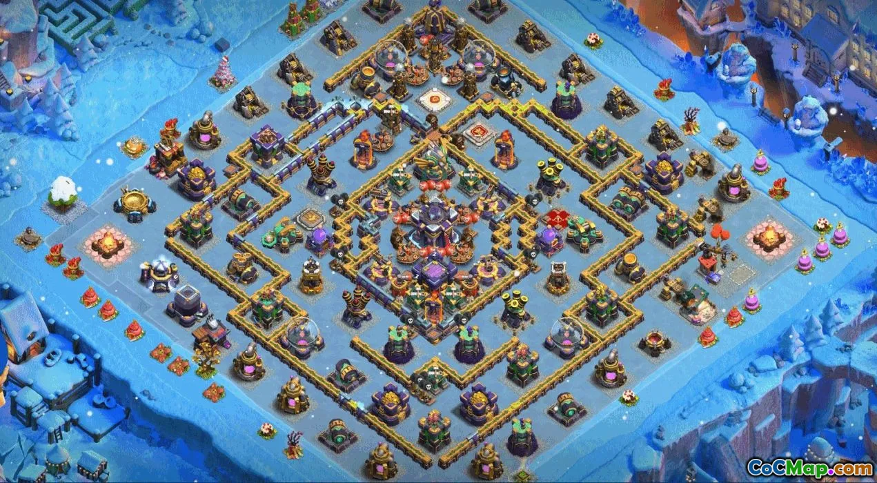 The base layout for Clash of Clans's Town Hall 15 offers players a strategic and visually appealing design to protect their village and resources. This layout is crafted to balance defense, offense, and resource management, making it suitable for various gameplay styles. It includes well-placed walls, defensive buildings, and traps to deter attackers and maximize defense efficiency.