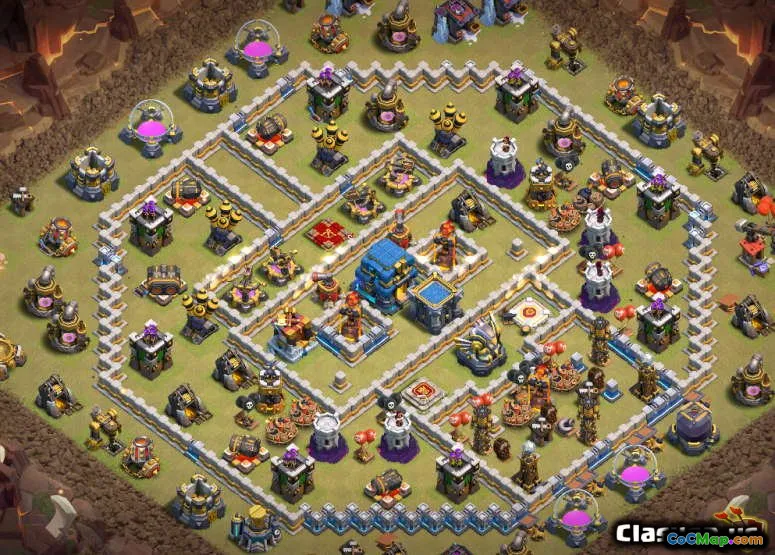 Zusätzlich zu Home Village Designs umfasst Clash of Clans mehrere spezialisierte Grundlayouts wie Trophäenbasen, Kriegsbasen und Hybridbasen. Trophäenbasen sind speziell entwickelt, um den Spielern dabei zu helfen, ihre Trophäen während Multiplayer -Schlachten zu verteidigen, und verhindern, dass Gegner Ressourcen leicht überfallen und stehlen. In der Zwischenzeit konzentrieren sich die Kriegsbasis auf den Schutz der Schlüsselstrukturen während der Clankriege und stellten sicher, dass das Dorf koordinierte Angriffe von konkurrierenden Clans standhält. Hybridbasen zielen darauf ab, sowohl Ressourcenschutz als auch Trophäenverteidigung in Einklang zu bringen, wodurch sie vielseitig und für verschiedene Szenarien effektiv sind.