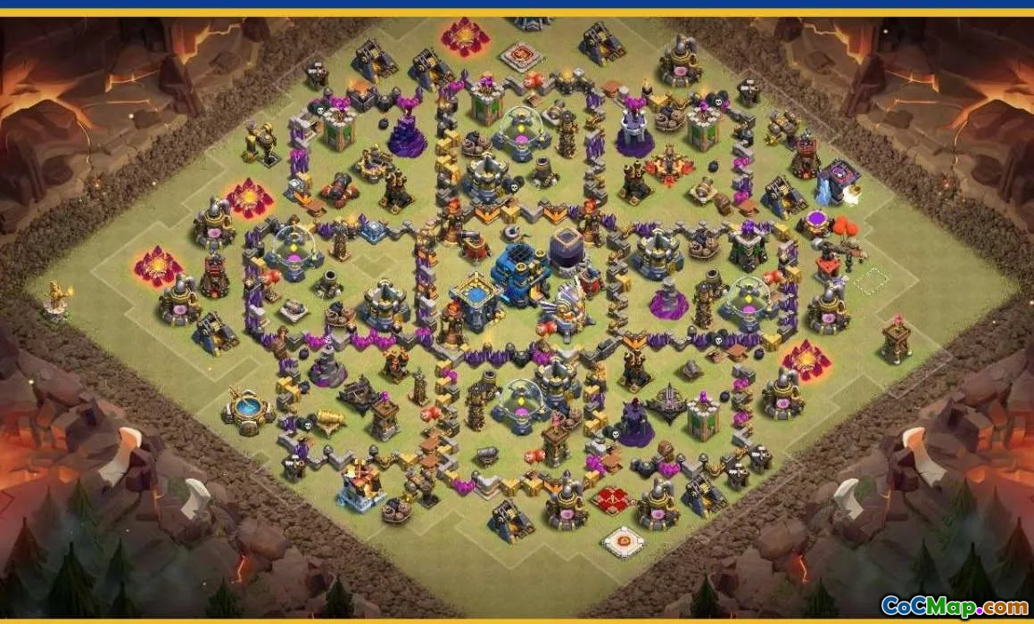 The layout also features a comprehensive map of Clash of Clans bases, offering players a visual guide to different base styles. This helps users choose or customize their own base layout according to their specific goals or to better defend against opponents' attacks. The key is to have a well-structured base that integrates defensive buildings, walls, traps, and other elements in an efficient manner, especially for Town Hall 12, which is a significant level in the game.