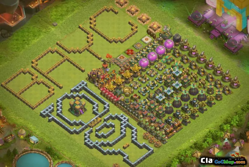 Die Anfrage beinhaltet die Erstellung eines Basislayouts für das Handy -Spiel -Clash von Clans, insbesondere für das Rathaus 14. Dieses besondere Level im Spiel bietet einzigartige Möglichkeiten und Herausforderungen, da die Spieler neue Verteidigungen, Truppen und Upgrades freischalten können, die ihre Gameplay -Strategie erheblich beeinflussen können. Ein gut erstelltes Basislayout ist für die Verteidigung von Ressourcen und Trophäen von wesentlicher Bedeutung und maximiert die Vorteile der Mechanik des Spiels auf diesem Niveau.