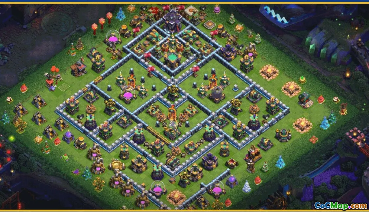 The base layout for Clash of Clans Town Hall 15 offers players a strategic design to maximize defense and resource protection. This layout is carefully crafted to ensure that key buildings like the Town Hall, resource storages, and defensive structures are well-placed to prevent attackers from easily breaching the base. It typically includes layered walls, well-positioned traps, and a balanced distribution of defenses to create a challenging environment for opponents.