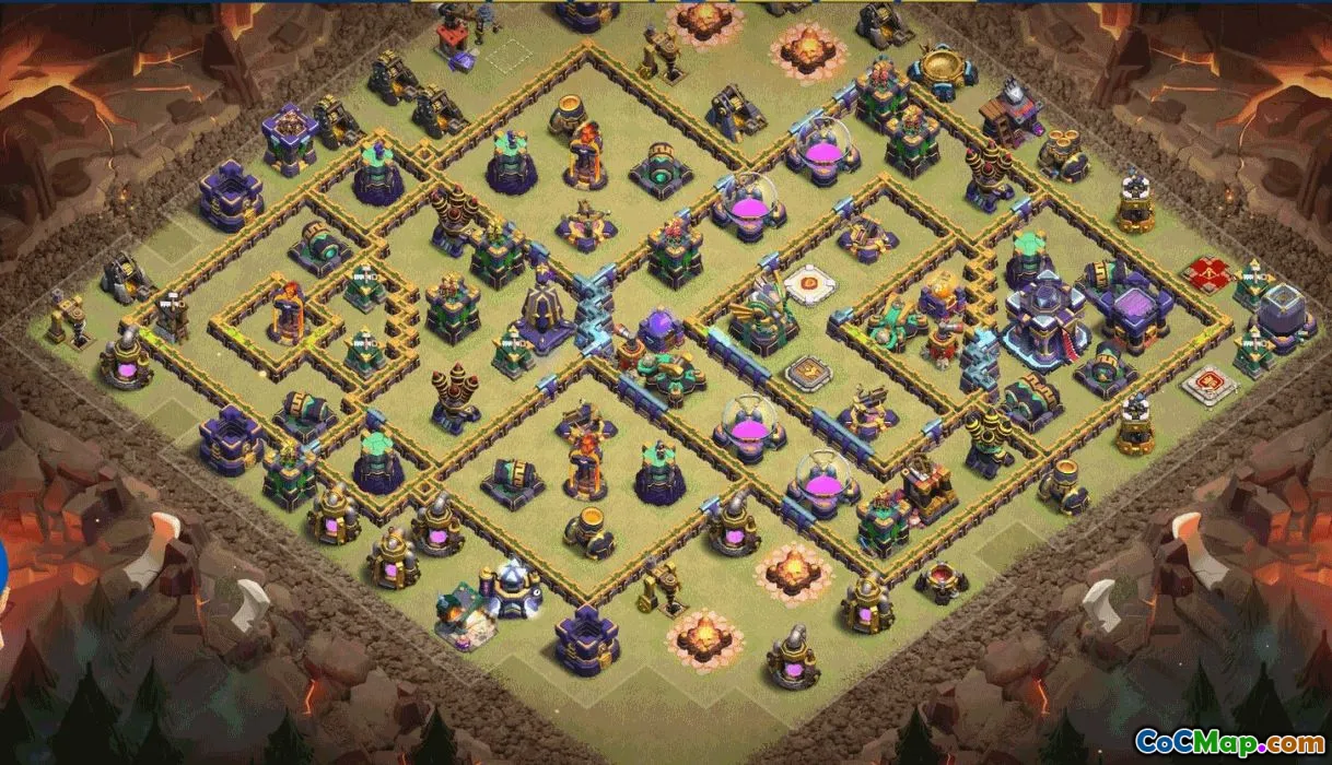 The base layouts include options for the home village, trophy bases, war bases, and general maps for Clash of Clans. These layouts are carefully crafted to maximize protection around key structures, such as the Town Hall, resource storages, and defensive buildings, making it more challenging for opponents to successfully attack. Players can select a layout based on their current strategy and specific in-game objectives, whether they aim to farm resources or climb the rankings.