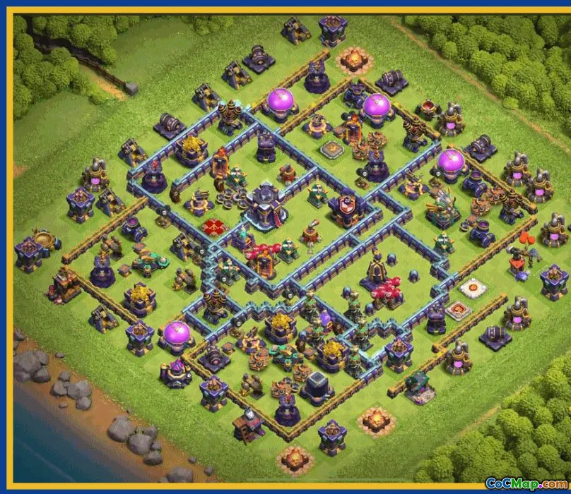 Additionally, there are specialized base setups for different purposes such as war bases, trophy bases, and map layouts. War bases are optimized to defend against enemy attacks during clan wars, focusing on protecting key structures and troop compartments. Trophy bases are designed to maximize trophy gains while minimizing losses, often by placing resources and defenses strategically to deter aggressive attackers. The map layout provides an overall view of the village positioning, helping players to plan and implement their defenses accordingly.