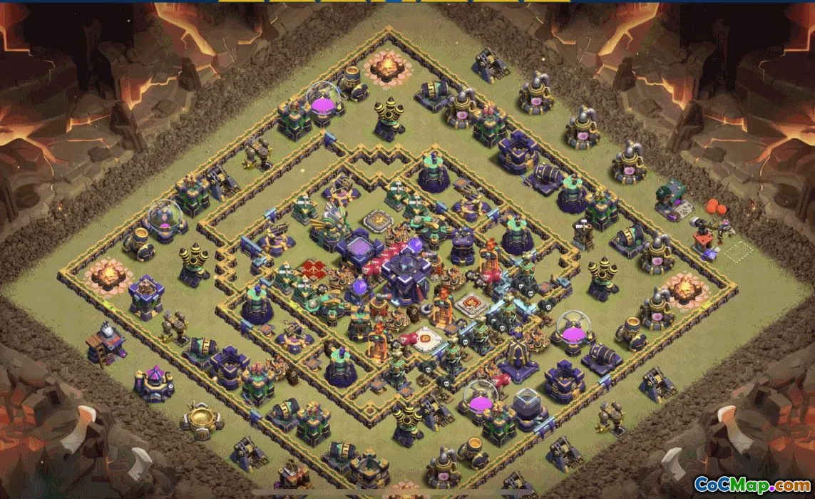 Within the collection, players can find specific designs aimed at different strategic needs. For example, trophy bases are designed to prevent opponents from easily winning attacks and gaining trophies, while war bases are optimized to defend against clan wars. The provided Clash of Clans map and layout samples help players visualize the positioning of defenses, traps, and resource buildings, ensuring a balanced and effective setup that maximizes their strengths and minimizes vulnerabilities.