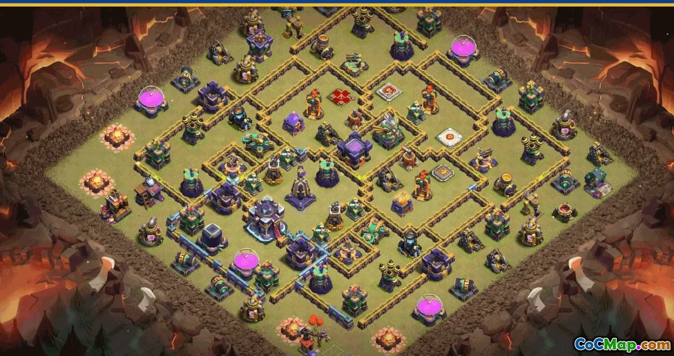 For Clan Wars or Clan War leagues, the War Base layout is crucial as it is designed to withstand attacks from various strategies and maximize defensive potential. This layout often features well-placed defensive buildings, traps, and heroes to disrupt enemy plans and protect the core of the base. Additionally, the Clash of Clans map and base layouts provide a visual guide to help players plan their defenses effectively, ensuring their village is resilient against a range of attack patterns.