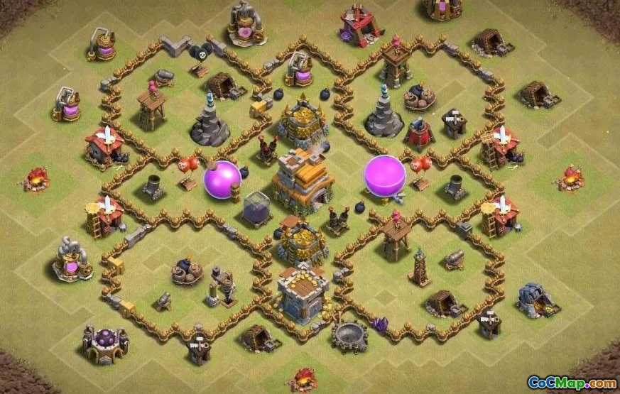 Zusätzlich zum Heimatdorf können die Spieler im Rathaus 7 auch von verschiedenen Grunddesigns profitieren, die für bestimmte Zwecke zugeschnitten sind. Dies schließt Trophäenbasen ein, die auf die Zählung der Trophäe durch wirksame Verteidigung sowie auf Kriegsgrundlagen für Clankriege abzielen, die sich auf den Schutz der Schlüsselressourcen und den Sieg für den Clan konzentrieren. Hybridbasen kombinieren Elemente aus beiden Strategien und bieten einen ausgewogenen Ansatz für die Trophäensammlung und den Ressourcenschutz. Jede Art von Basislayout hat seine einzigartigen Vorteile und ist so konzipiert, dass sie die spezifischen Ziele des Spielers im Spiel erreichen.