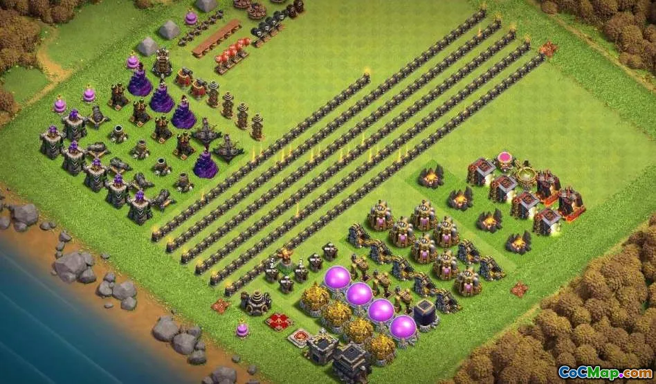 Das Heimdorf im Rathaus 9 bietet den Spielern die Möglichkeit, ihre Verteidigung zu entwickeln. Spieler können eine Vielzahl von Grundlayouts in ihre Strategien einbeziehen, einschließlich landwirtschaftlicher Grundlagen, die den Ressourcenschutz und Kriegsgrundlagen priorisieren, um Gegner daran zu hindern, Sterne in Clankriegen zu verdienen. Effektive Basislayouts beinhalten häufig die strategische Platzierung von Defensivgebäuden, Fallen und Ressourcenlager, um ein ausgewogenes Design zu erstellen, das Angriffen standhalten kann und gleichzeitig eine effiziente Landwirtschaft ermöglicht. Die Spieler werden ermutigt, mit verschiedenen Layouts zu experimentieren, um herauszufinden, was für ihren Spielstil am besten funktioniert.
