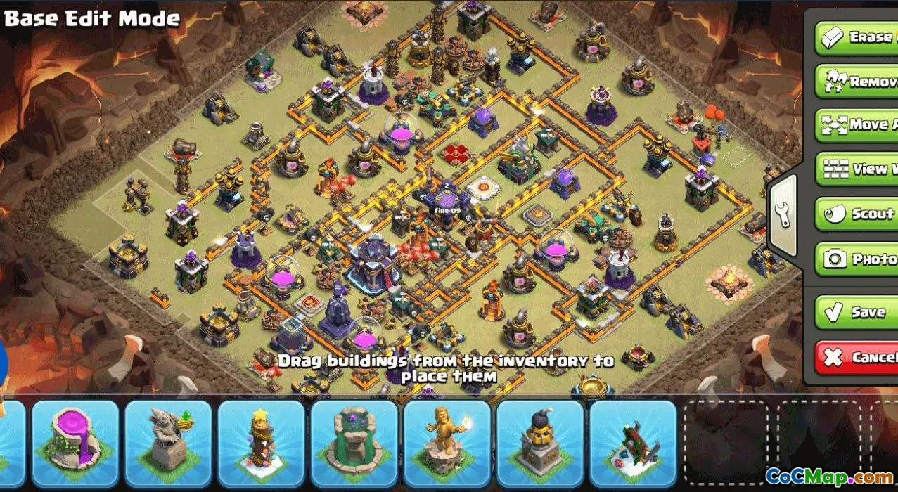 This layout includes different types of bases such as the home village, trophy base, war base, and coc map, each serving specific strategic purposes. The home village layout focuses on safeguarding resources and Town Hall while creating difficult paths for attackers. The trophy base is designed to help players maintain or increase their ranking by protecting trophies from losing them during raids. The war base, on the other hand, is optimized for clan wars, with defensive structures arranged to maximize defense during clan warfare scenarios. The coc map provides a visual way to see the overall placement of bases relative to each other, making it easier to plan attack strategies or defend effectively.