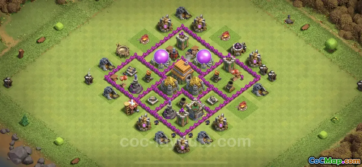 In Clash of Clans ist die Entwicklung eines effektiven Basislayouts sowohl für die Verteidigung als auch für das Ressourcenmanagement von entscheidender Bedeutung. Das als „Base TH6 Max Levels“ bezeichnete Design konzentriert sich auf die Optimierung der Town Hall Level 6-Struktur, um maximalen Schutz gegen verschiedene Arten von Angriffen zu gewährleisten. Dieses Setup eignet sich besonders für Spieler, die sich sowohl auf Anti-Alles-Strategien als auch auf effiziente Landwirtschaft konzentrieren möchten, um ihre Ressourcen zu sichern und gleichzeitig feindlichen Angriffen standzuhalten.