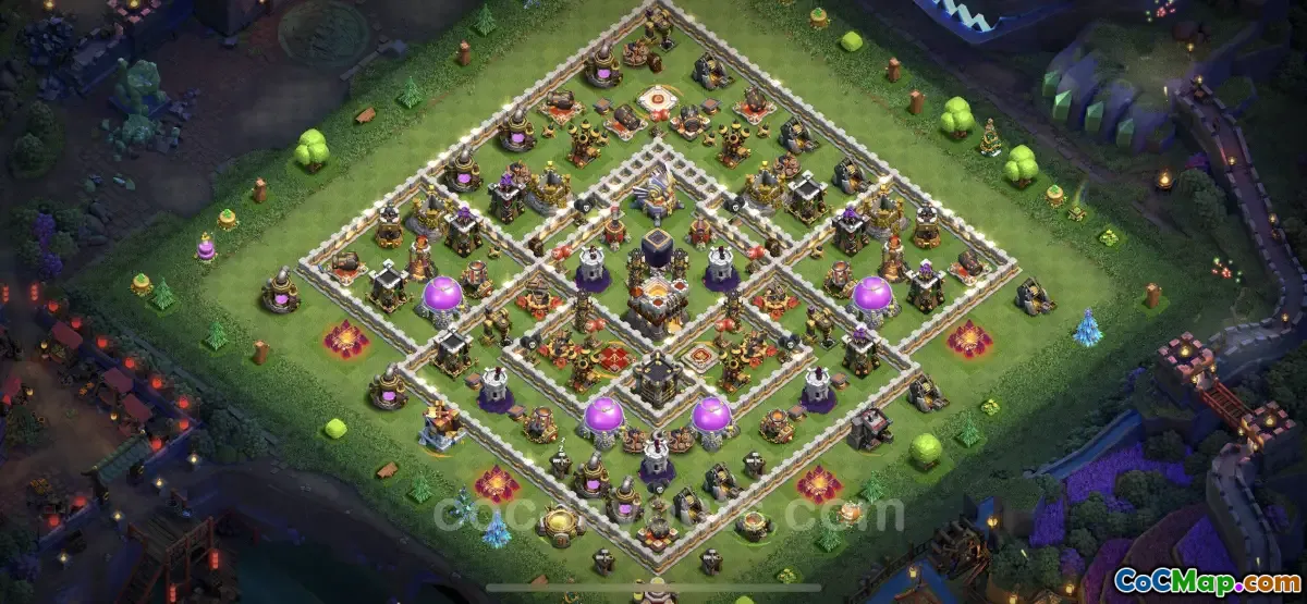 Hybrid base designs, which combine features of both farming and war bases, are also popular for TH11 players. These bases protect resources while still being competitive for trophy pushing, making them versatile for different gaming strategies. A hybrid base design focuses on efficiently blending resource defense and centralizing important defensive units to maximize protection against various attack strategies used by opponents.