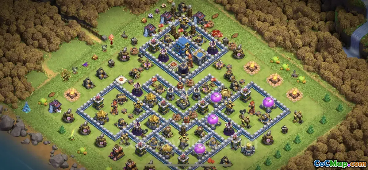 The Farming Base TH12 design for Clash of Clans is specifically crafted for players who want to optimize resource collection while minimizing losses during attacks. A hybrid layout combines elements of both farming and trophy defense, ensuring that both resources and trophies are safeguarded effectively. The structure of the base strategically places storages and collectors, making it challenging for opponents to raid successfully while still allowing for efficient farming of resources.