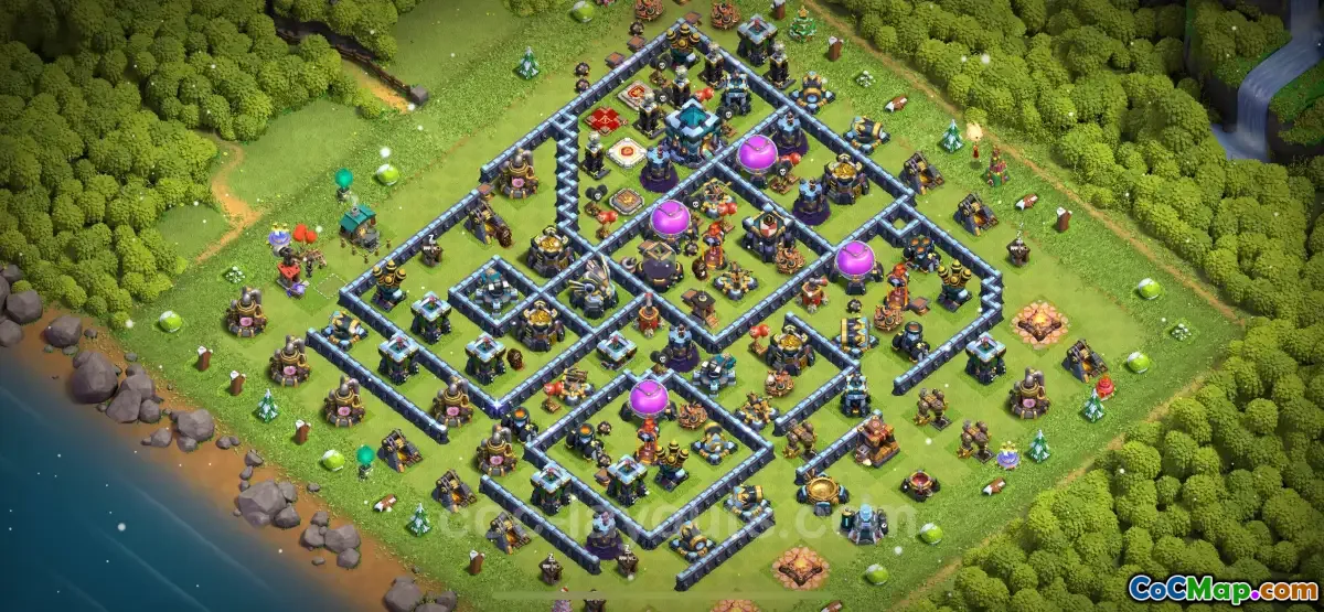 Discover the ultimate TH13 farming base design for Clash of Clans! Secure your resources with our anti 3-star layout and easy copy link. Get started now!