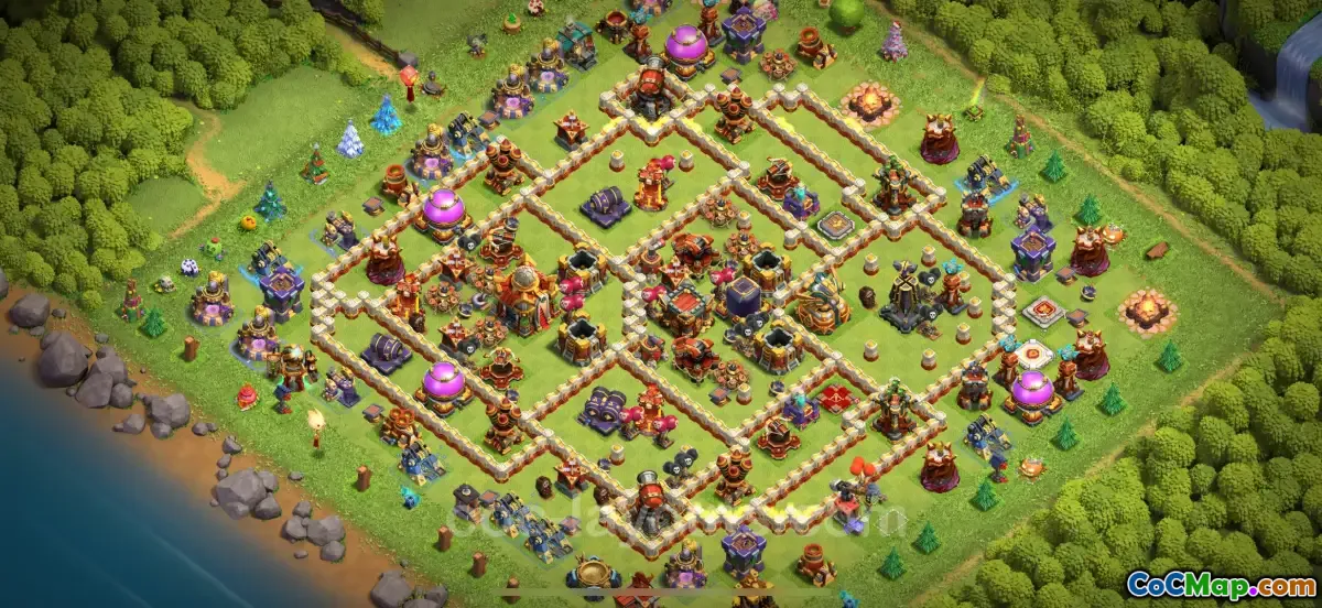 Das Design der Town Hall-Stützpunkte der Stufe 16 in Clash of Clans hat sich erheblich weiterentwickelt, da die Spieler ständig nach Layouts suchen, die eine wirksame Verteidigung gegen verschiedene Angriffsstrategien bieten. Die Notwendigkeit einer Basis, die gegen die Drei-Sterne-Kategorie ist, ist von entscheidender Bedeutung, insbesondere für diejenigen, die es mit Trophäenförderung und Ressourcenschutz ernst meinen. Der Fokus dieses Entwurfs liegt auf der Schaffung einer Festung, die Angriffen anderer Spieler standhalten und gleichzeitig wertvolle Ressourcen schützen kann. Dieses Design richtet sich an Spieler, die ihre Verteidigungsfähigkeiten verbessern und ein robustes Farm-Setup beibehalten möchten.