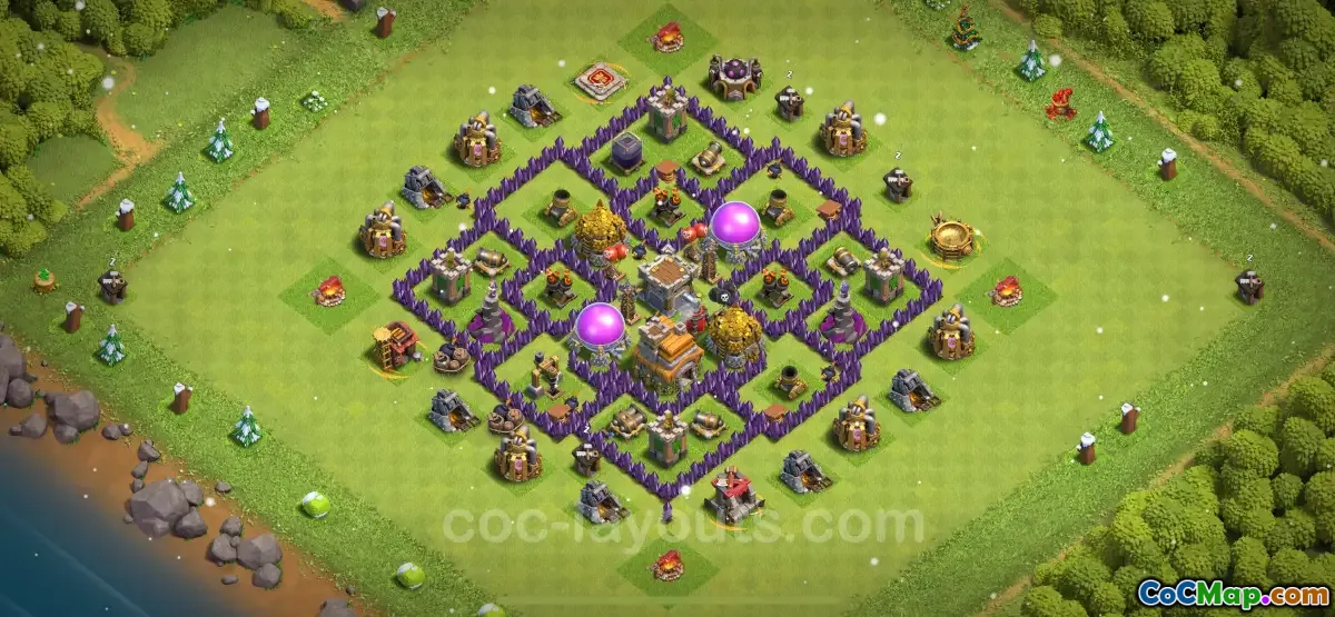 Discover the ultimate TH7 farming base design for Clash of Clans 2024! Max levels, anti 3-star strategies, and a copy link for easy defense setup.