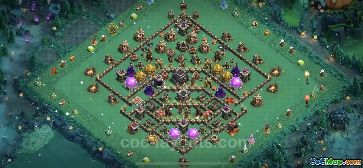 In addition to its defensive capabilities, the Farming Base TH9 is a hybrid design. This means that not only does it protect resources, but it can also provide a degree of defense against trophy loss. This balance allows players to maintain a stable resources flow while also being cautious about falling in rank, making it ideal for those who wish to play casually while still being competitive.