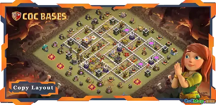 The layout incorporates strategic placements of defensive structures, traps, and walls, creating a challenging environment for attackers. Key defensive buildings are positioned to cover each other, providing overlapping zones of protection. Additionally, the positioning of the Town Hall itself is crucial; it is often placed in a location that is difficult to reach, forcing attackers to commit substantial resources to attempt a breach while wary of traps and potential counterattacks.