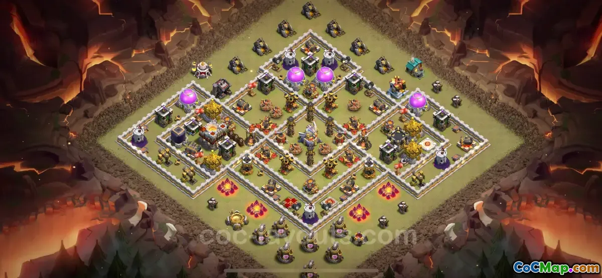 One of the key components of a strong TH11 war base is the strategic placement of the Eagle Artillery, which is a powerful defense that attacks air and ground units alike. To maximize its effectiveness, players must position it in such a way that it has a wide range of attack while being protected by other defensive structures. In addition, Inferno Towers can be utilized to target high-hitpoint units, thus serving as a deterrent against common attacking troops like Golems and Hog Riders.