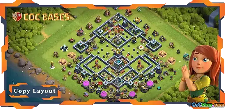 Discover the ultimate TH13 base layout designed for Clash of Clans! Anti 2 stars and Anti Everything defense with strategic placements for maximum protection.