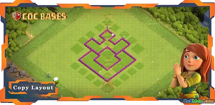 In this design, the town hall is positioned at the core of the base. Surrounding it are two mortars and a clan castle, which are key defensive structures. The central placement of these buildings ensures that they are well-protected by nearby walls, making it difficult for attackers to reach them without facing strong defenses first. The arrangement of walls is crucial in guiding enemy troops into traps or bottlenecking their assault.