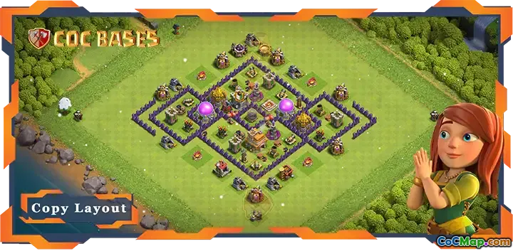 Optimize your TH7 farming with this max level hybrid layout, designed for resource protection and efficient farming. Perfect for Clan Wars and resource collection.