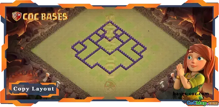 This top-rated TH7 war base is specifically engineered to prevent 3-star attacks by maximizing defenses and strategic layout placement. The design focuses on protecting core resources and attacking structures while confusing enemy troops with well-placed traps and walls.