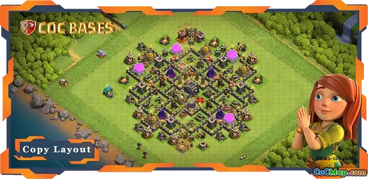 Diese spezielle TH9-Verteidigungsbasis ist strategisch so konzipiert, dass sie robusten Schutz gegen verschiedene Angriffsstrategien bietet, wobei der Schwerpunkt insbesondere auf der Verhinderung von Drei-Sterne-Angriffen liegt. Das Layout legt Wert auf Luft- und Bodenverteidigung, was es für die meisten Angreifer zu einem herausfordernden Ziel macht. Durch die Konzentration wichtiger Verteidigungsanlagen im zentralen Bereich dient das Design dazu, Feinde davon abzuhalten, eine vollständige Zerstörung der Basis zu erreichen.