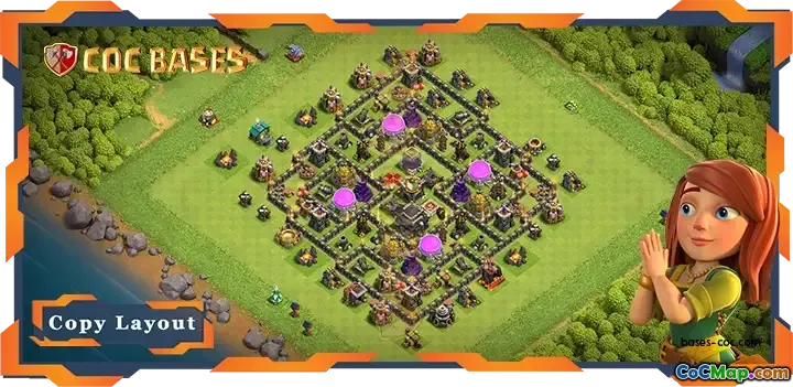 In Clash of Clans, the Town Hall 9 (TH9) farming base is strategically designed to protect resources and ensure a stable defense. This particular layout is a hybrid design known as the Anti Everything layout. It places the Town Hall at the center of the base, which helps safeguard it from attackers. The central location of the Town Hall is crucial because it forces opponents to expend more troops and effort to reach it, which can deter many attackers.