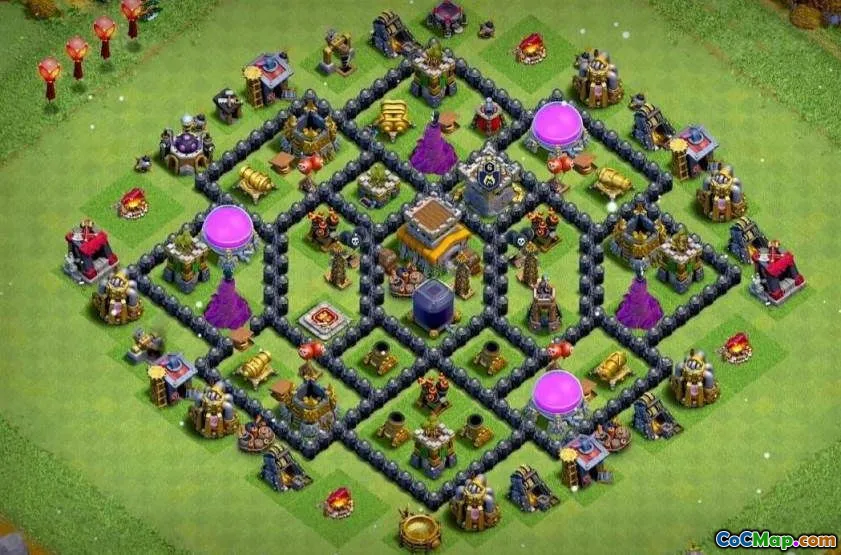 Für eine Landwirtschaft im Rathaus 8 ist das Layout in der Regel zum Schutz der Ressourcen und zur Verwendung von Wänden und Verteidigungsgebäuden konzipiert, um eine Hochburg zu schaffen, in der Spieler leicht ihre Gold-, Elixier- und Dark -Elixir -Lagerungen verteidigen können. Andererseits ist ein Trophäenbasislayout strategisch angeordnet, um Angreifer zu schwierigen Wegen zu zwingen und sie zu ermutigen, mehr Truppen und Zeit zu verbringen, um minimalen Erfolg zu erzielen. Dieses Layout umfasst häufig Fallen und starke defensive Strukturen, die positioniert sind, um die Schäden an feindlichen Truppen zu maximieren und sicherzustellen, dass die Spieler nach jedem Kampf Trophäen aufrechterhalten oder gewinnen können.