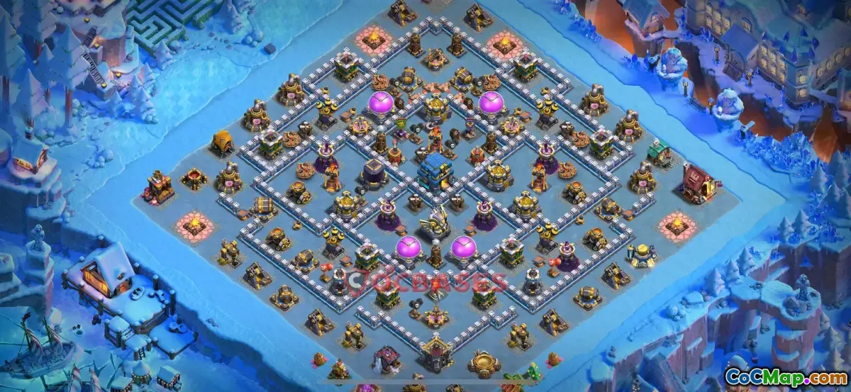 This Town Hall 12 hybrid base design is specifically crafted for Clash of Clans players who aim to effectively defend their treasures and resources while maintaining a balanced attack strategy. The term "hybrid" indicates that the layout is optimized for both farming and clan wars, providing strong protection against various types of attacks. The base incorporates a strategic placement of walls, traps, and defenses to make it difficult for opponents to reach vital resources or achieve easy three-star victories.