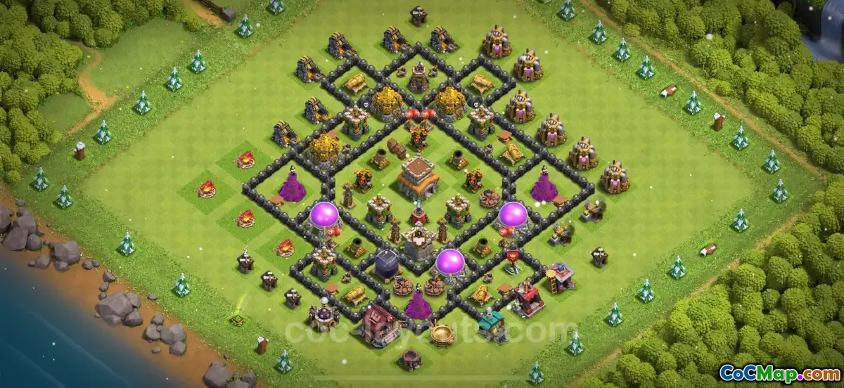 The Best Anti 2 Stars Base for Town Hall 8 (TH8) provides a strategic layout designed to minimize the chances of opponents earning two stars during an attack. This defensive arrangement is particularly crucial in Clash of Clans in 2025, as it helps protect players from various types of attacks while maintaining strong defenses. The design focuses on a centralized Town Hall and key defensive structures, forcing attackers to rely on specialized strategies and making it difficult for them to achieve a second star through the destruction of key buildings.