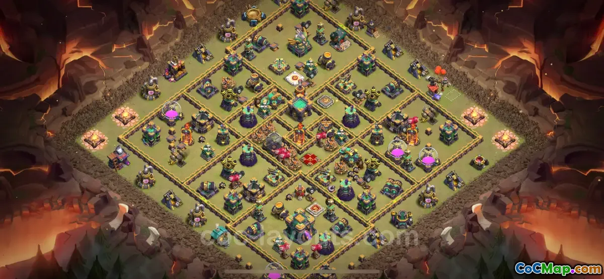 The Best War Base for Town Hall Level 14 is designed to offer robust defenses against various attack strategies. This base layout is optimized to protect key resources and the Town Hall itself, making it a valuable asset for players participating in Clan War Leagues (CWL). The strategic placement of defensive structures ensures that attackers face significant challenges, as the base is crafted to defend against a wide array of offensive tactics.