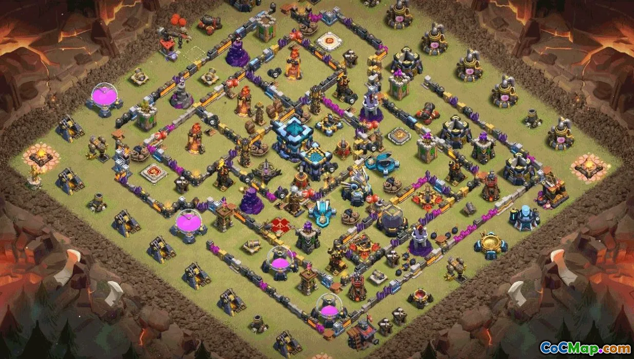 The provided content appears to focus on offering a comprehensive base layout for Clash of Clans players, specifically targeting Town Hall 13. It emphasizes the importance of utilizing different types of base designs such as home village layouts, trophy bases, war bases, and general map configurations. These layouts are essential for protecting resources, defending against opponents, and improving overall gameplay strategy.