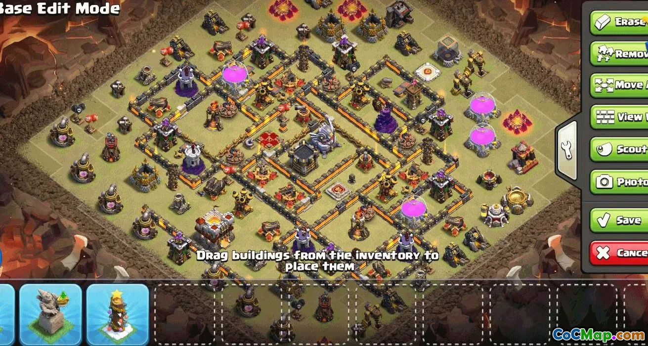 In addition to base arrangements, the collection offers detailed maps of Clash of Clans, allowing players to better understand the terrain and placement of key structures on the map. This can assist players in planning their attacks or defenses more effectively. The layouts are designed with security and resource protection in mind, balancing offense and defense to maximize your success in various aspects of the game.
