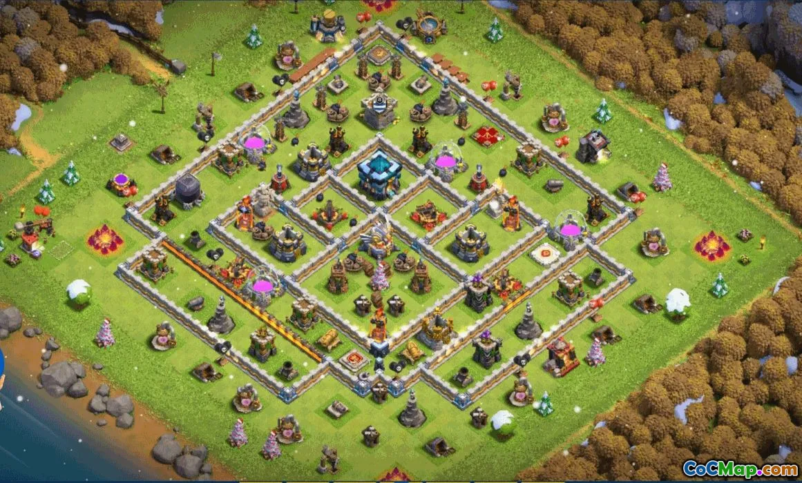 With a well-structured Clash of Clans base, players can effectively defend against attacks by utilizing various defensive placements, traps, and walls. For town hall 13, the map and base layout are especially important because this level introduces new defenses and troop capabilities. Choosing the right base layout can help you safeguard your resources, secure trophies, and succeed in clan wars. There are also dedicated layouts for the clan war map, which optimize defense against common attack strategies and spell placements, giving your clan an edge in war efforts.