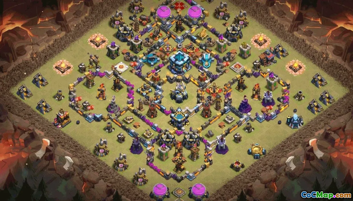 This content provides a comprehensive base layout for Clash of Clans players, specifically tailored for Town Hall 13. It offers various types of base designs such as home village, trophy base, war base, and overall coc map layouts. These layouts are vital for players aiming to enhance their defenses, secure trophies, and succeed in clan wars by strategically positioning buildings and defenses.