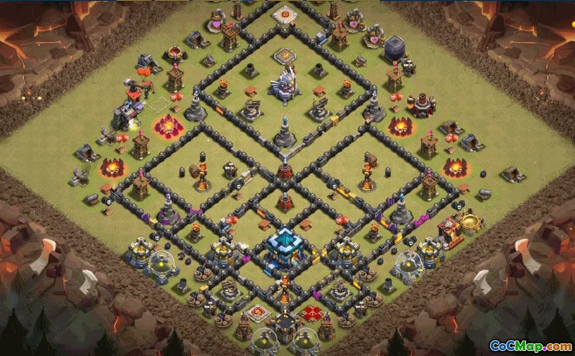 The provided content appears to be a collection of base layouts for Clash of Clans, specifically tailored for Town Hall 13. These layouts include various types of bases such as home villages, trophy bases, war bases, and map layouts. Such layouts are essential for players looking to optimize their defenses, protect their resources, and improve their chances in Clan wars by employing strategic placement of buildings and defensive structures.