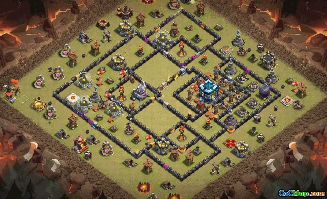 Clash of Clans enthusiasts can explore different map configurations that include specific placements for defenses, traps, and key buildings. The town hall, resource storages, and defensive structures are arranged to maximize protection and create effective chokepoints. Many base builders also incorporate a balanced allocation of walls and defenses to create a challenging obstacle for opponents targeting your base.