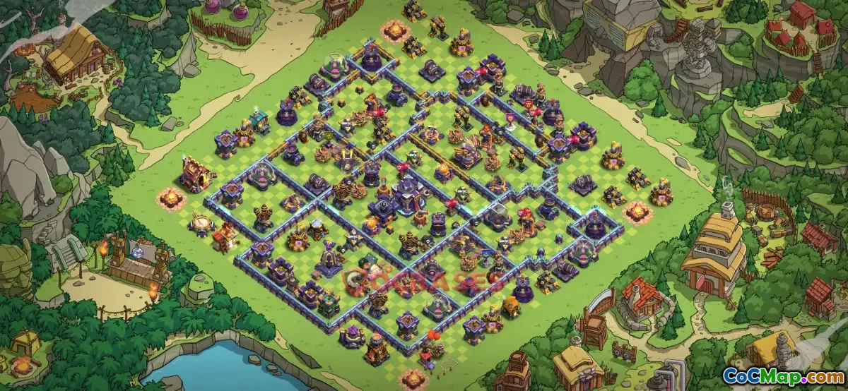 This Town Hall 15 trophy base is specially designed to protect your resources and defend against high-level attackers, making it an excellent choice for players focused on maintaining and climbing trophies. The layout strategically places key defenses and traps to delay and weaken enemies, ensuring your clan's war and trophy positions are securely maintained.