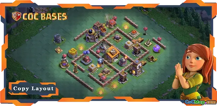 The Best Builder Hall Level 6 base design in Clash of Clans focuses on providing strong defensive capabilities while effectively utilizing the available space. This base layout is created to protect key structures such as the Builder Hall and the Hidden Teslas, while also ensuring that attackers are strategically funneled into traps. The arrangement of defenses encourages opponents to approach from less advantageous angles, maximizing the effectiveness of the defensive buildings.